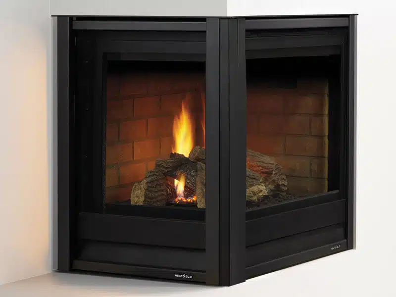 Add architectural interest to your space and enjoy the power of fire in creative new ways with this stunning two-sided gas fireplace. Upgrade any corner, and warm up your space with class. Left or right-facing gas fireplaces are an ideal way to add impact in tighter spaces. Other creative applications include bringing the fire out into the room to elegantly divide a space to enjoy from multiple viewing angles.
