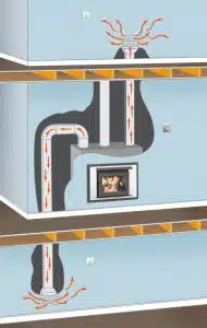 With the FP25 and the FP30, homeowners can supplement their heat source with an optional Heat Distribution System. Using standard “B” vent piping, the powered heat distribution system transfers heat into isolated rooms. Each heat duct is independently switch controlled, allowing for on demand control and comfort.