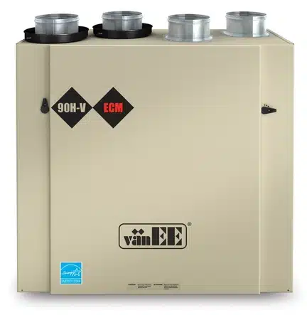 The 90H-V ECM ERV energy recovery ventilator incorporates extremely high performance motors, equivalent, in power consumption, to a compact fluorescent bulb (13.5 watts each), This significantly lowers energy costs while affecting their high performance.