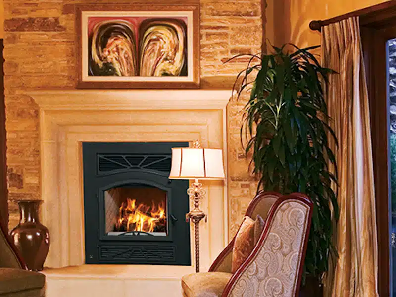 With superior heat output and high-efficiency operation, the Villa Vista™ wood-burning fireplace excels. It’s the ideal option for large spaces, heating up to 2,500 sq. ft.* with catalytic technology that achieves more than 75% efficiency. It also meets EPA Phase II emission standards for clean, environmentally responsible burning. Its tall and expansive size features a single door that provides an unobstructed viewing area. Plus, the Villa Vista offers premium accessories to complement its impressive stature.
